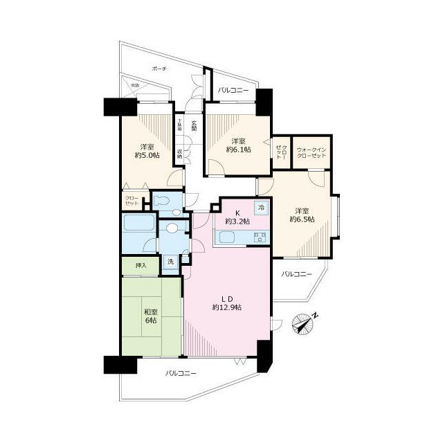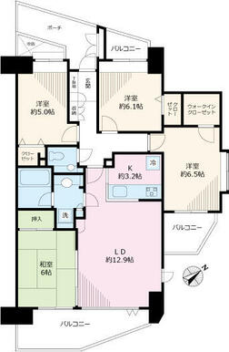 | 間取り | 4LDK(LDK16.1洋室6.5洋室6.1洋室5和室6.2) | 主要採光面 | 南東 |